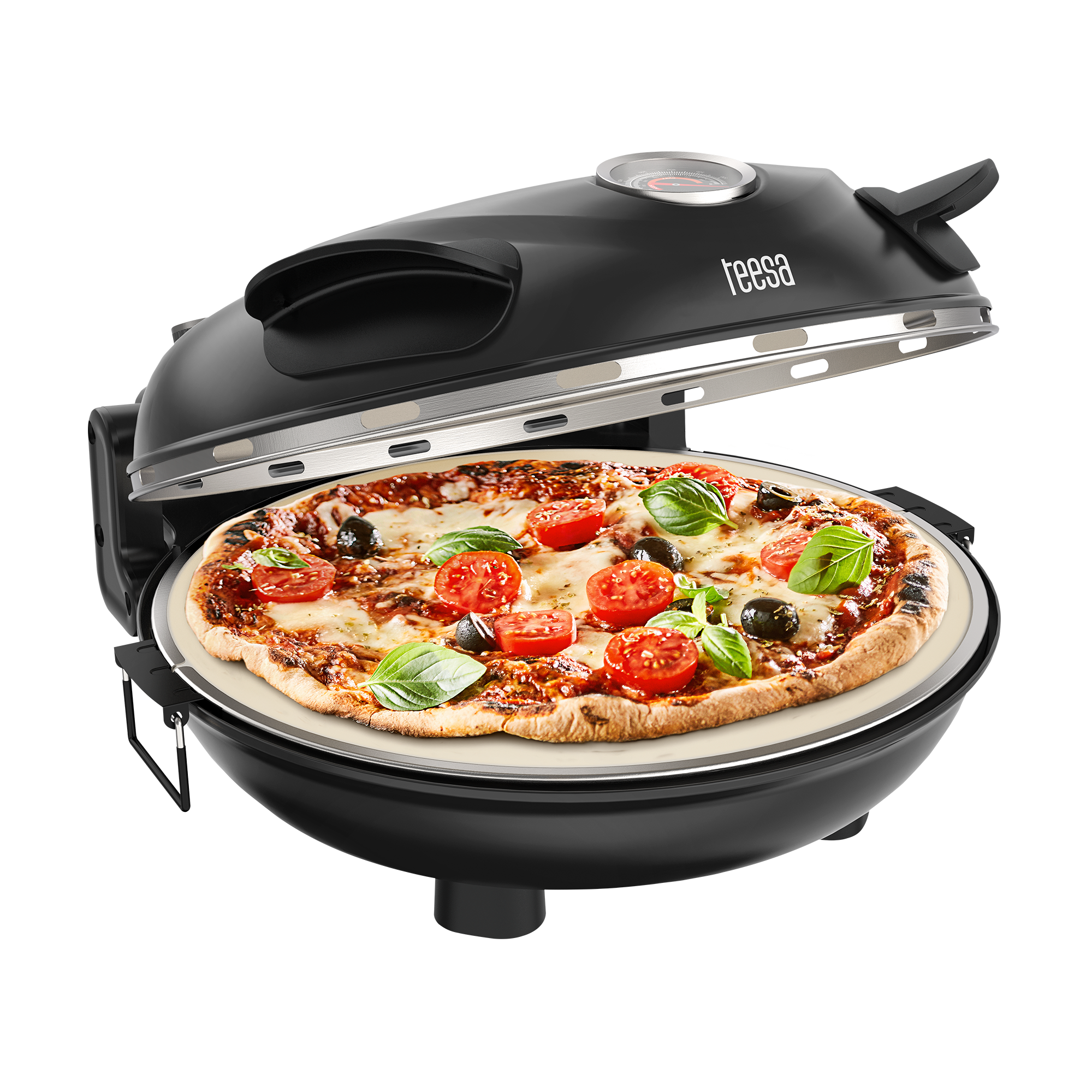 Zastanawiasz się ile czasu zajmuje pieczenie pizzy? Domowy piec do pizzy Teesa, dzięki specjalnej konstrukcji wykorzystującej dwa elementy grzejne, doskonale i równomiernie wypiecze nie tylko ciasto, ale też ser i pozostałe składniki dosłownie w 5 minut. Możesz też wykorzystać go do przygotowania innych, nie tylko włoskich przysmaków!