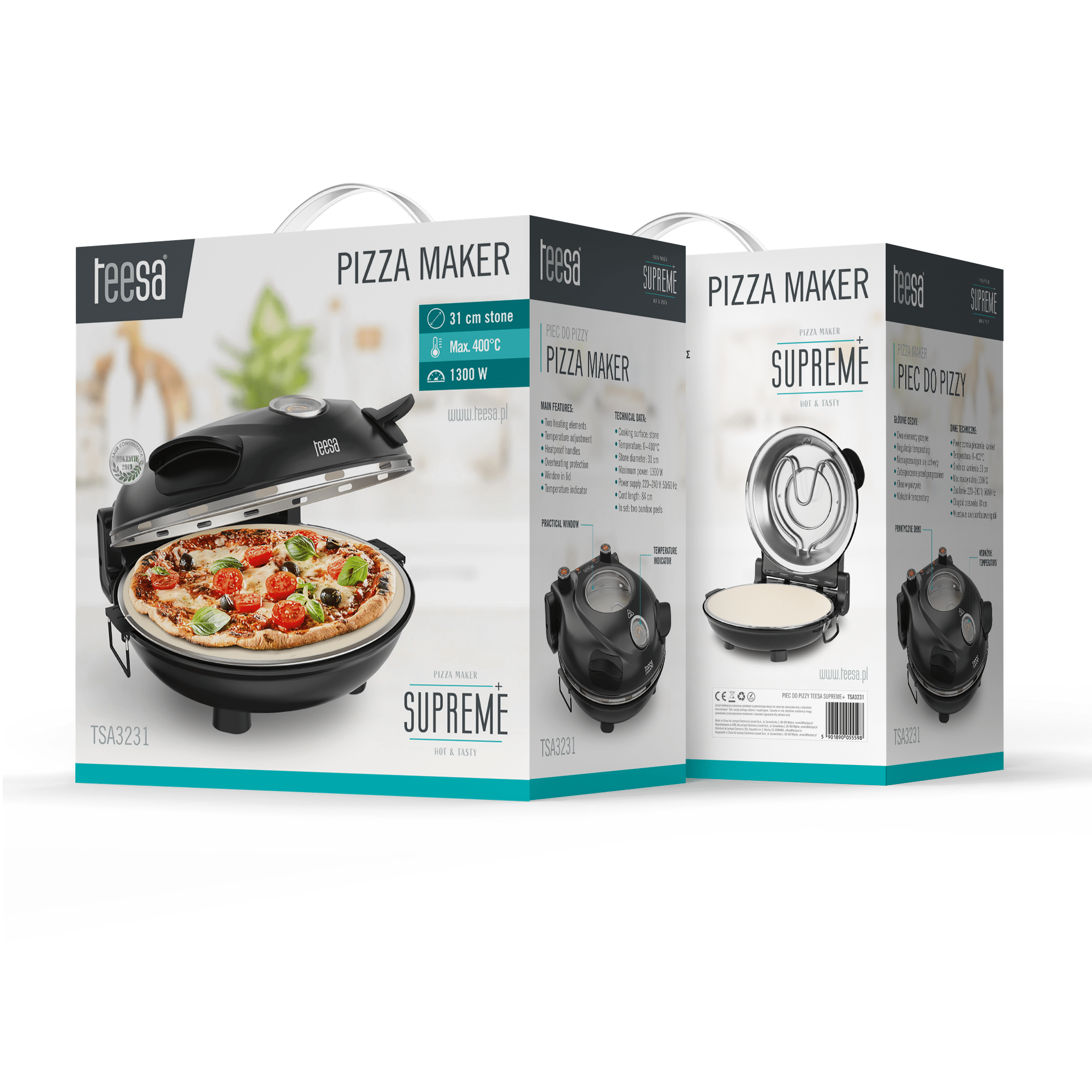 Przenieś smak włoskiej pizzy do swojego domu! Piec do pizzy Teesa Supreme+ dostępny jest w dwóch modnych kolorach – eleganckiej czerni lub energetycznej czerwieni. Stylowy, kompaktowy i łatwy w obsłudze, stanie się gwiazdą Twojej kuchni!