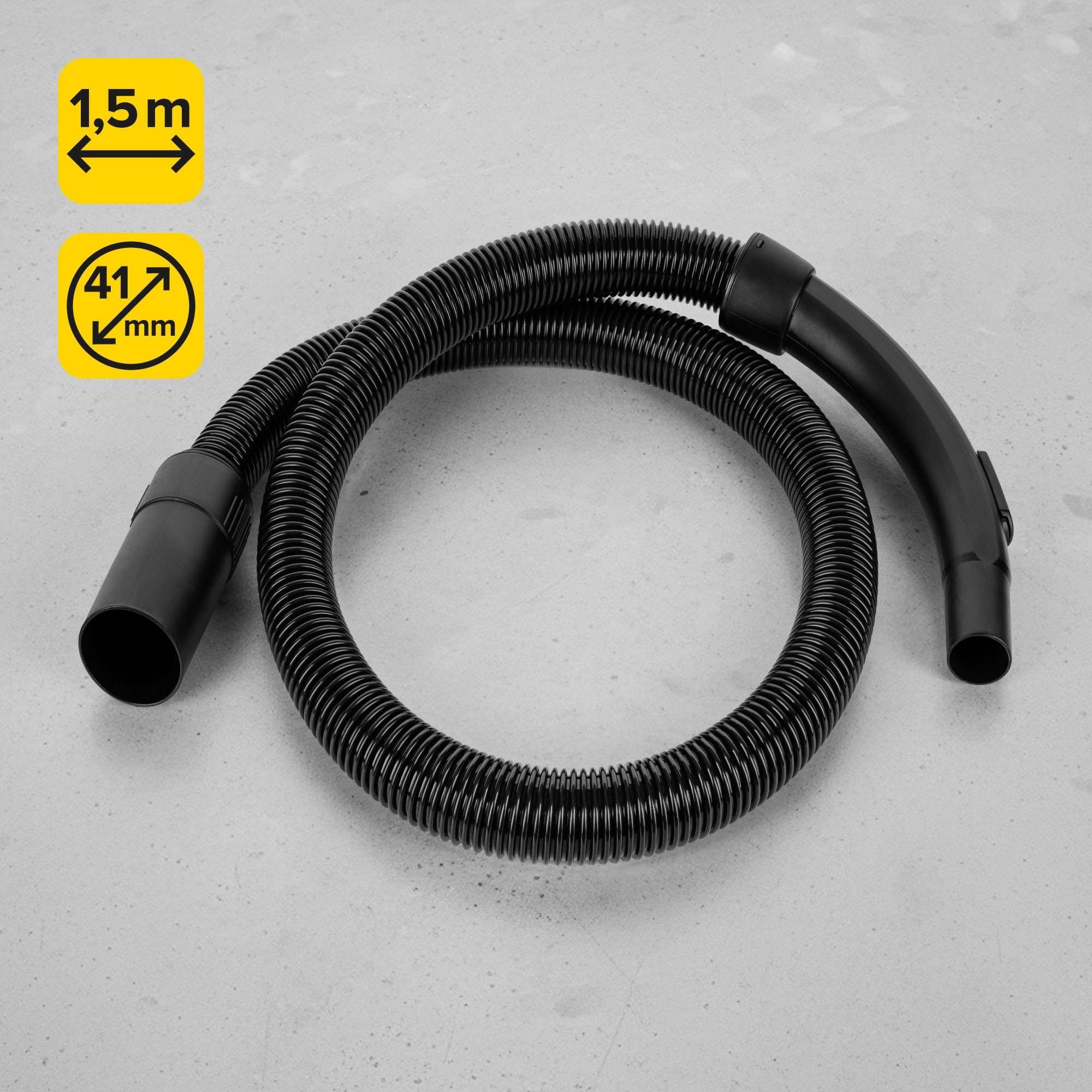 Wyposażony w obrotowy, elastyczny wąż o długości 1,5 m i średnicy 41 mm, odkurzacz umożliwia swobodne manewrowanie nawet w trudno dostępnych miejscach. Wąż nie skręca się i nie ogranicza ruchów, co zwiększa wygodę sprzątania. Dodatkowo hak do szczotki ułatwia przechowywanie akcesoriów i utrzymanie porządku po zakończonej pracy.