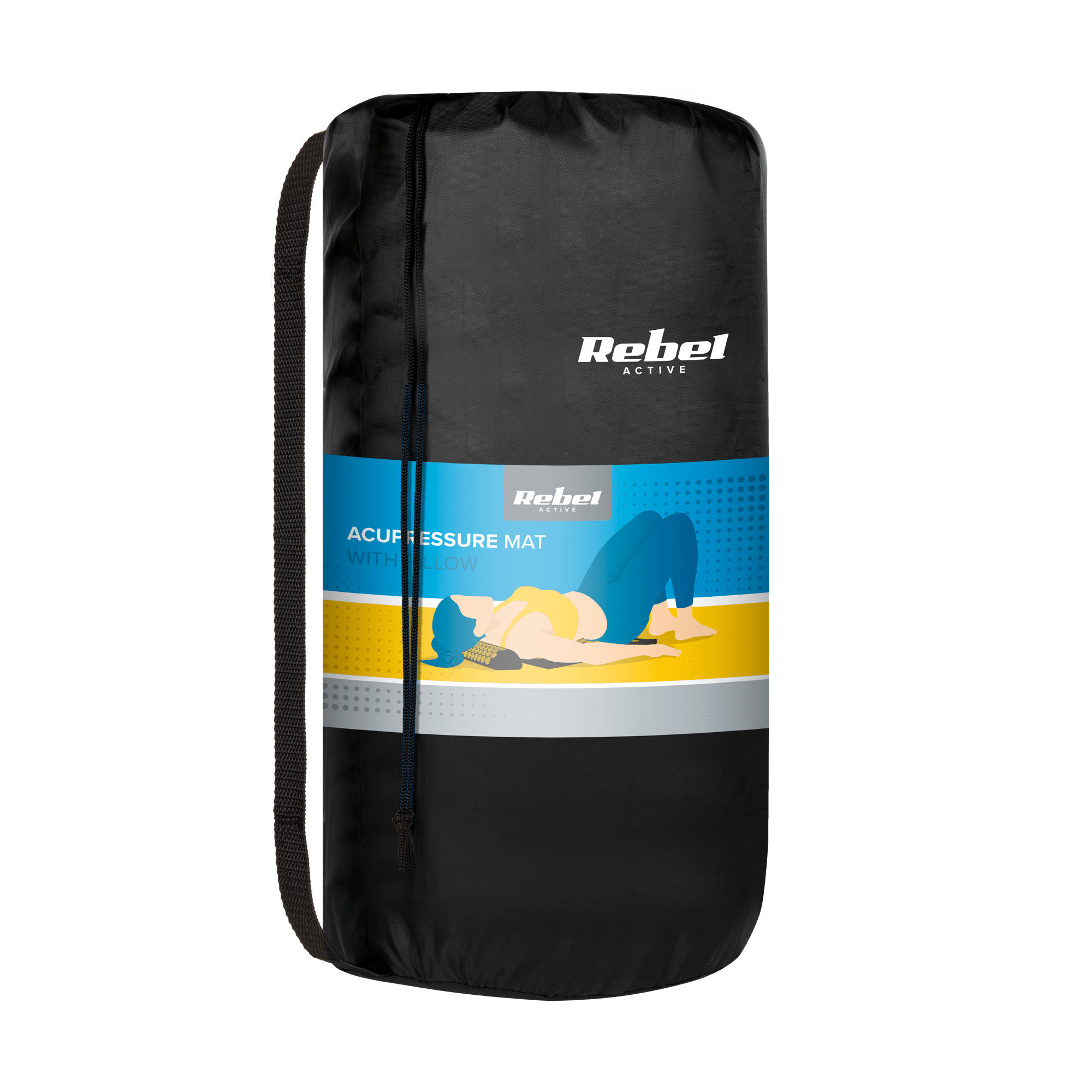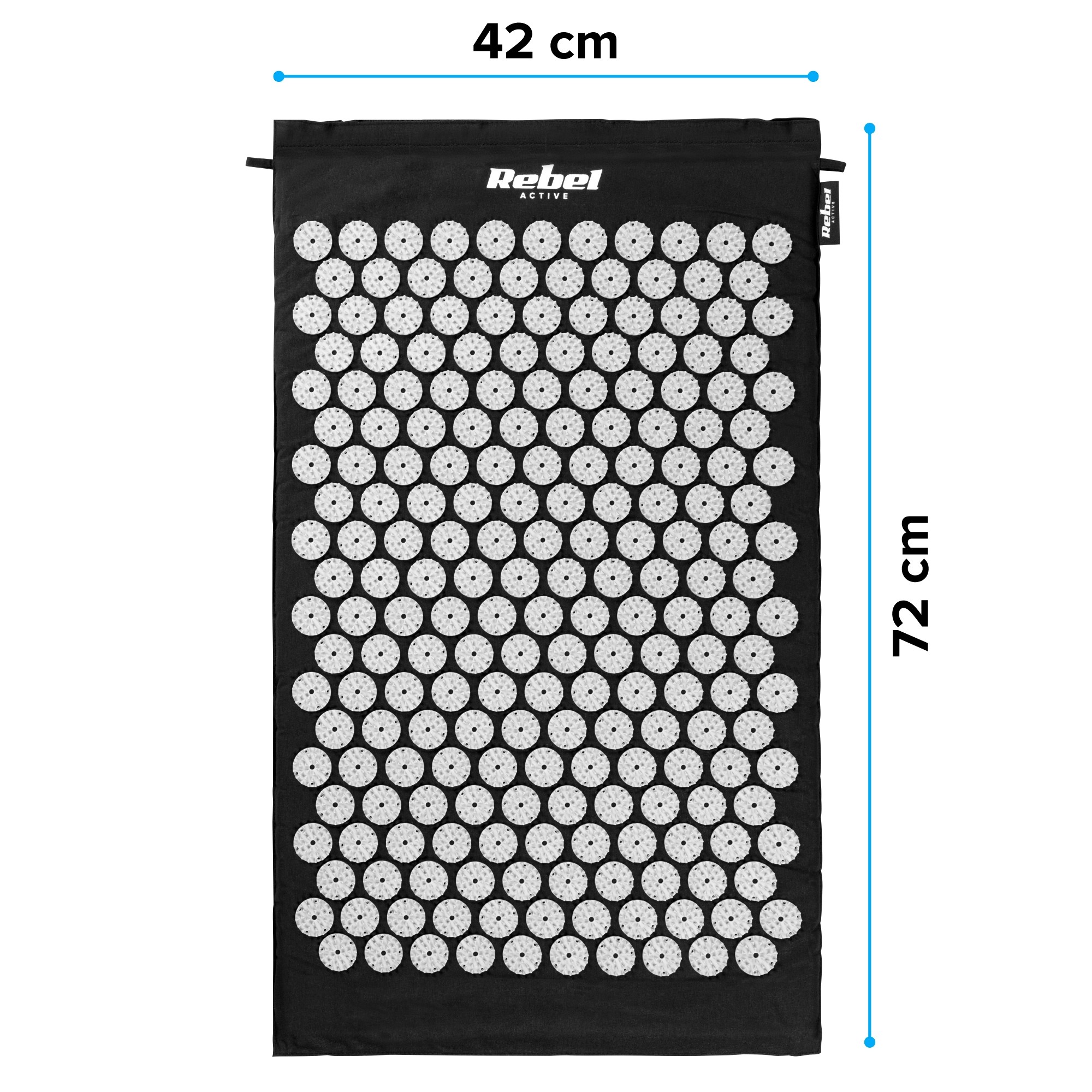 Mata zdrowotna z kolcami do akupresury z poduszką, 72x42cm, szare kolce, Rebel Active