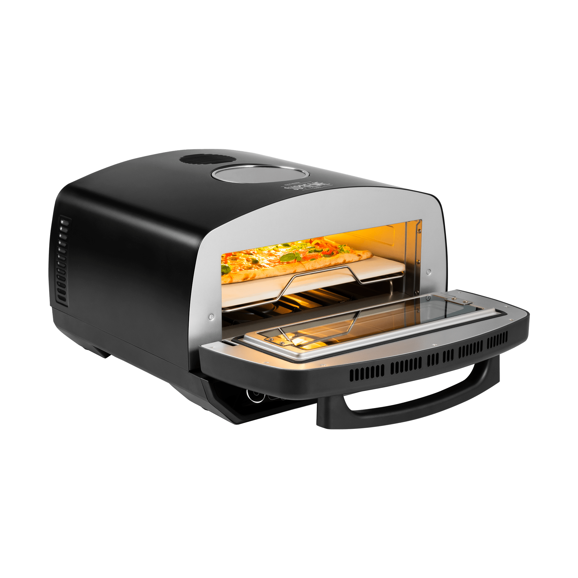 Piec do pizzy SUPREME ELITE 2200 W, 450 stopni, dwie grzałki, okno, LED, 33 cm, różne programy pieczenia