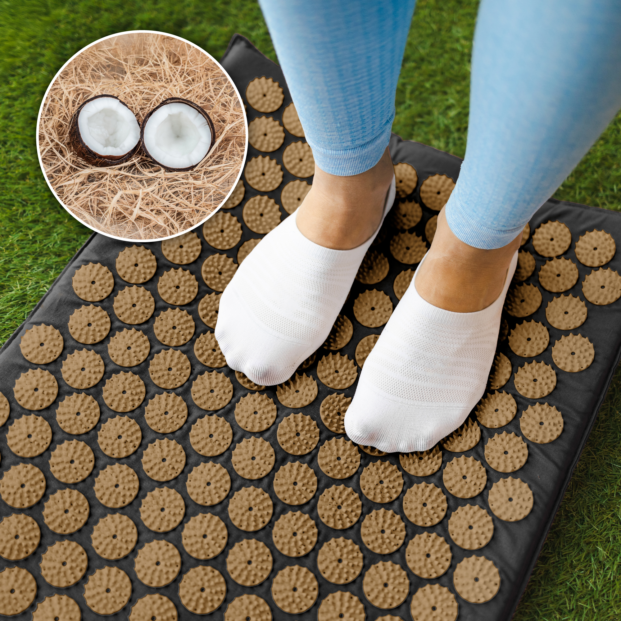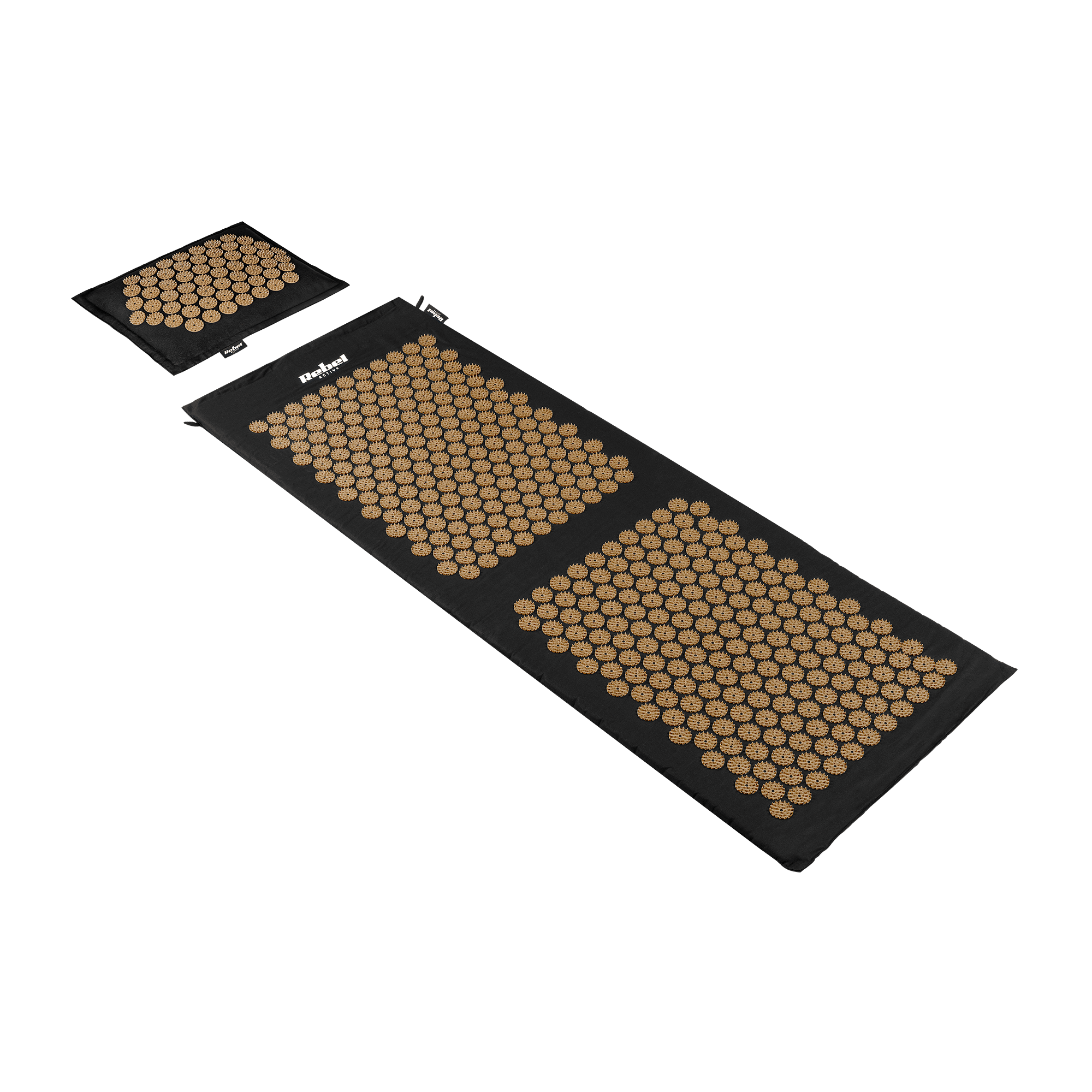 Mata zdrowotna ECO z kolcami do akupresury z poduszką, 130x50cm, XXL, złote kolce, Rebel Active