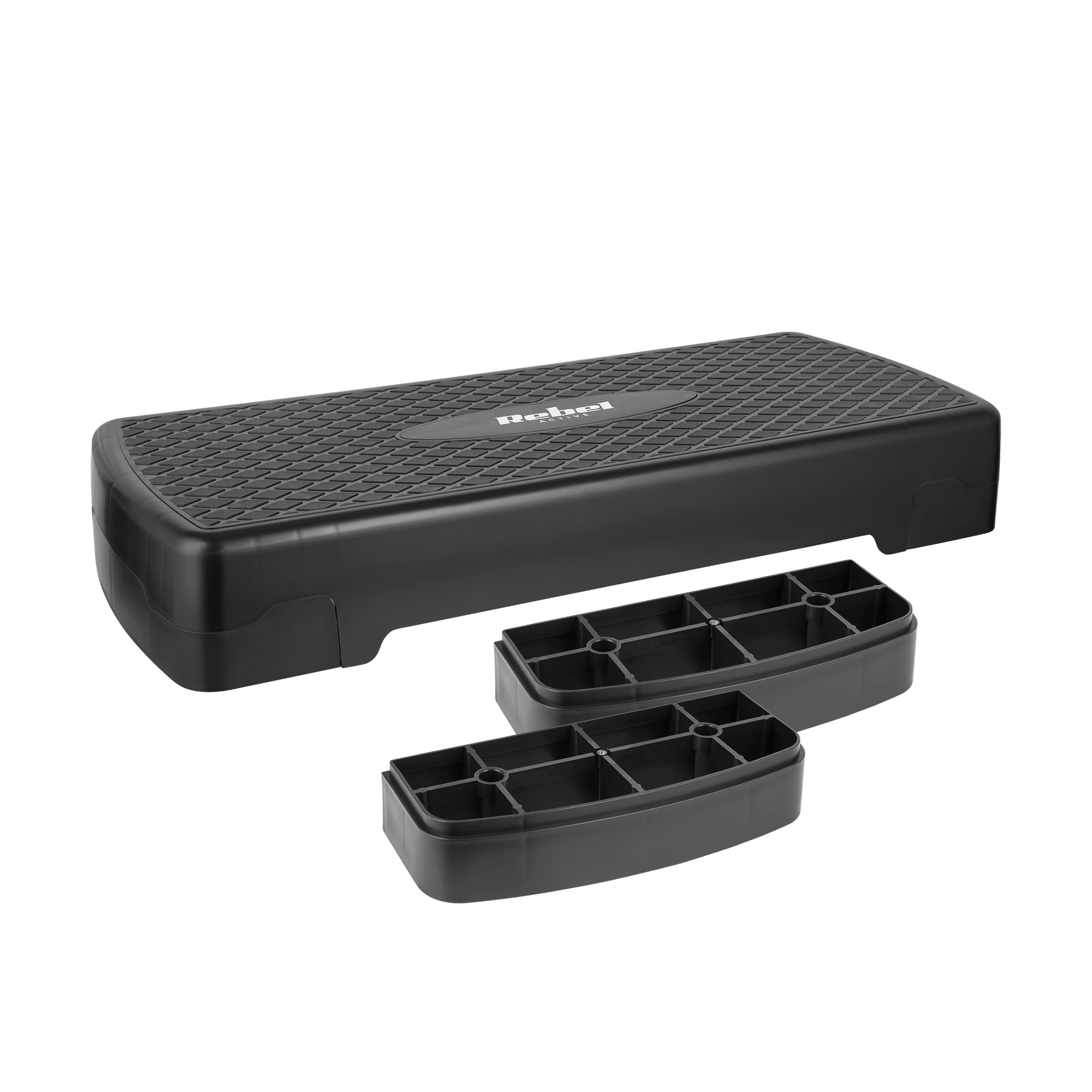 Step do aerobiku i ćwiczeń fitness, 2 stopnie, 68cm, czarny, REBEL ACTIVE