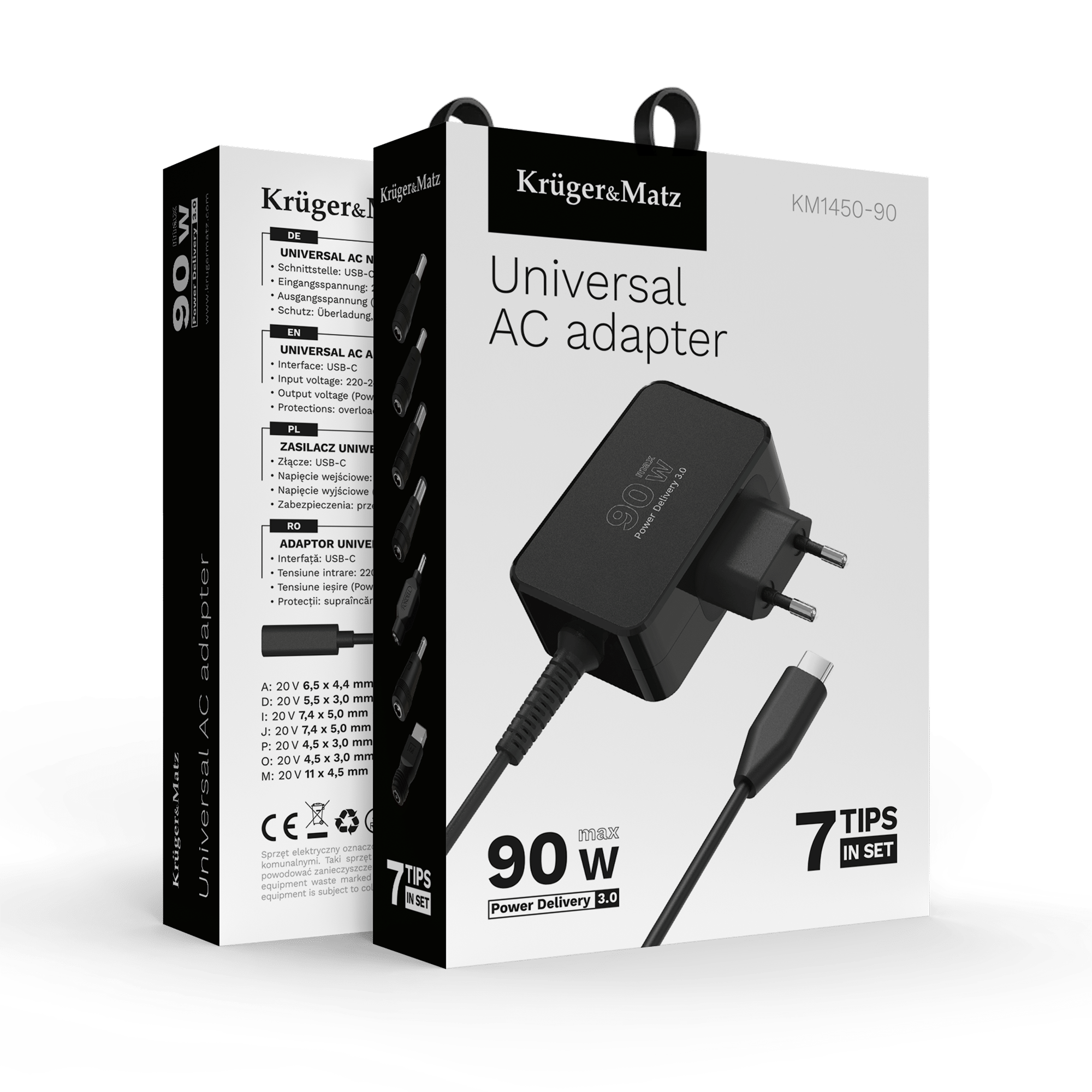 Zasilacz uniwersalny Kruger&Matz 90W z funkcją Power Delivery 7 końcówek