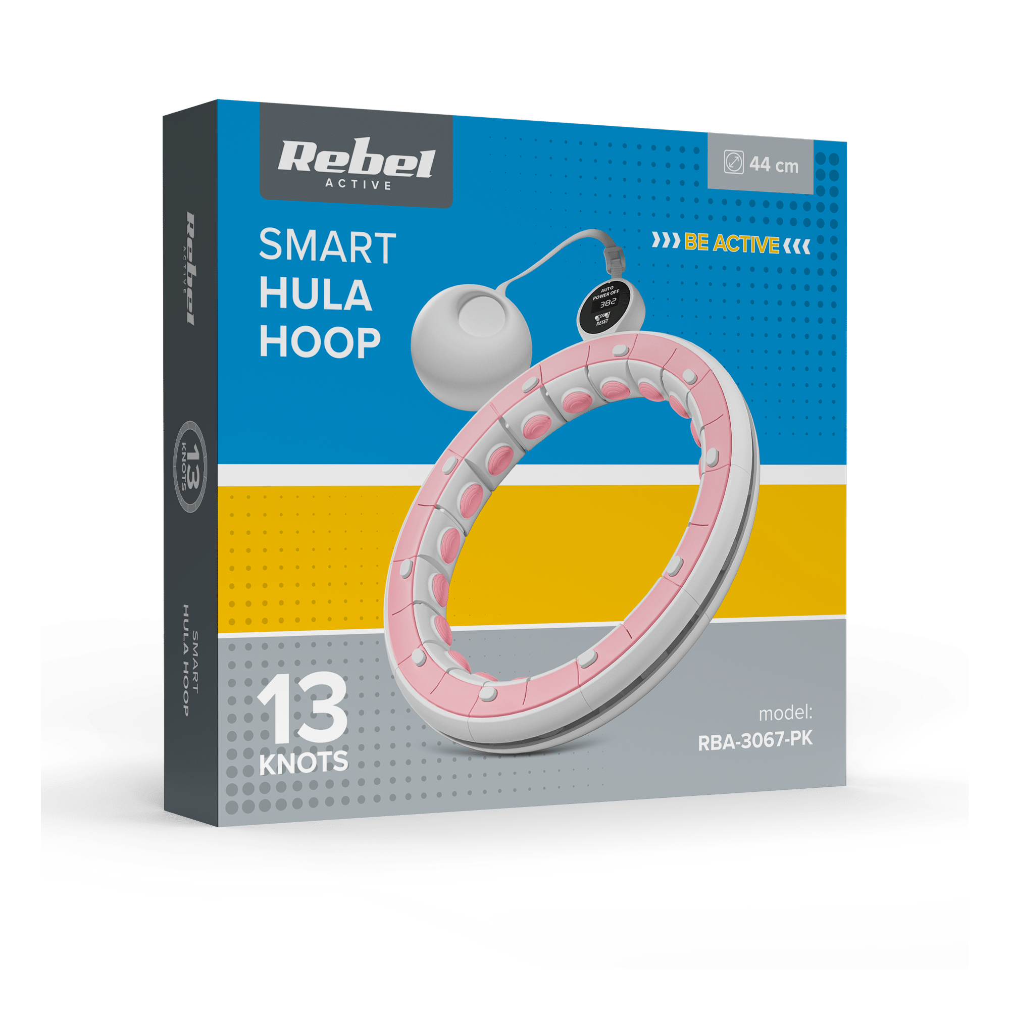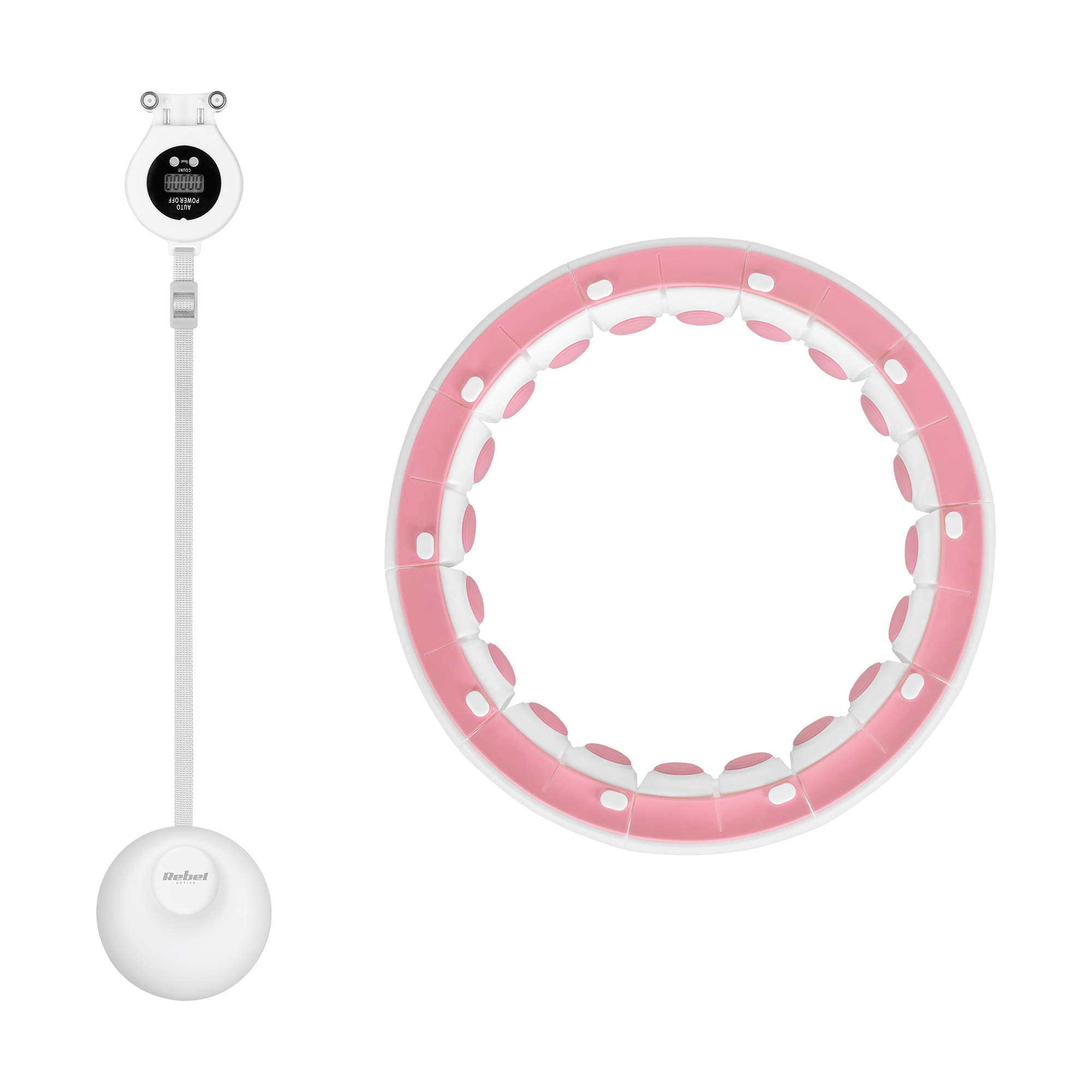 Smart Hula Hop odchudzające koło z licznikiem, wypustkami i obciążeniem 50cm, różowe, REBEL ACTIVE