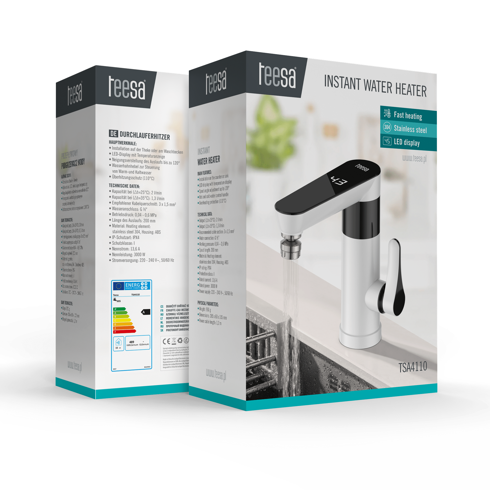Przepływowy podgrzewacz wody - bateria stojąca biała