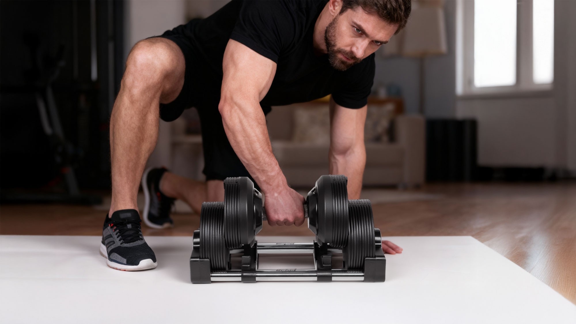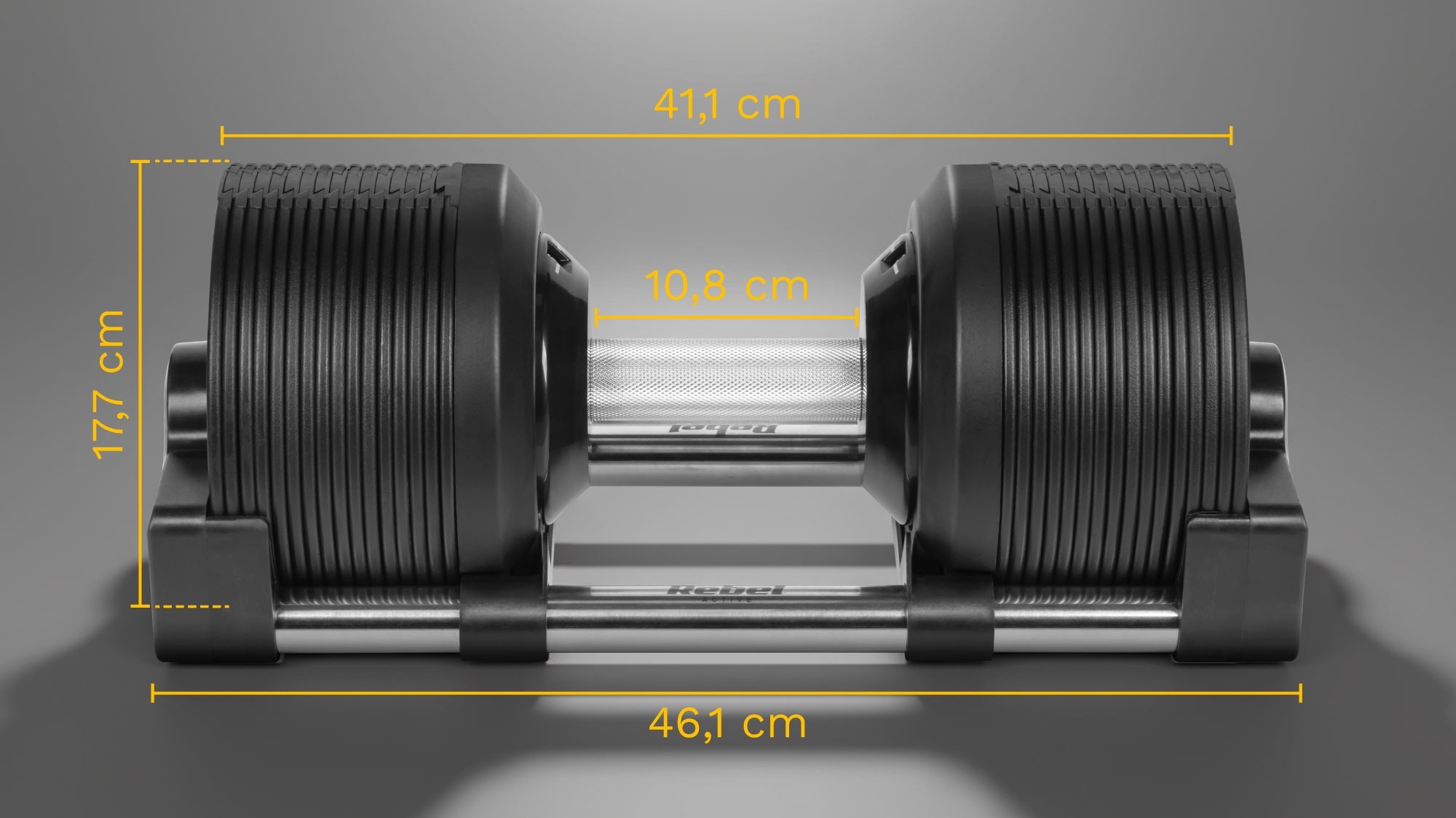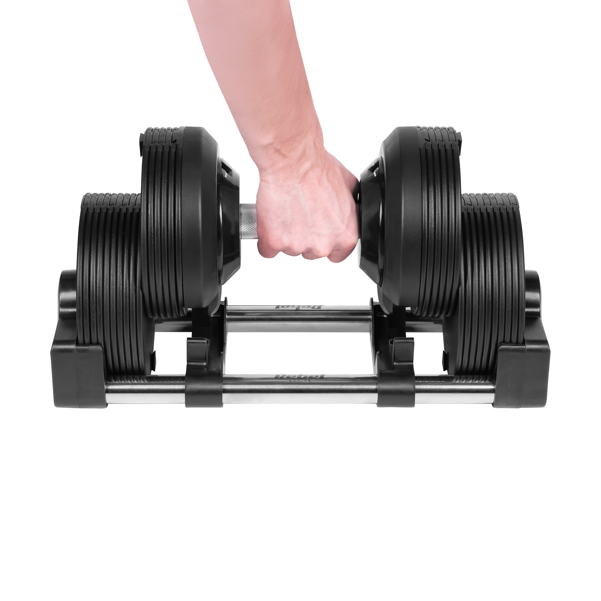Hantel żeliwny regulowany automat 36 kg, skok co 1kg, REBEL ACTIVE