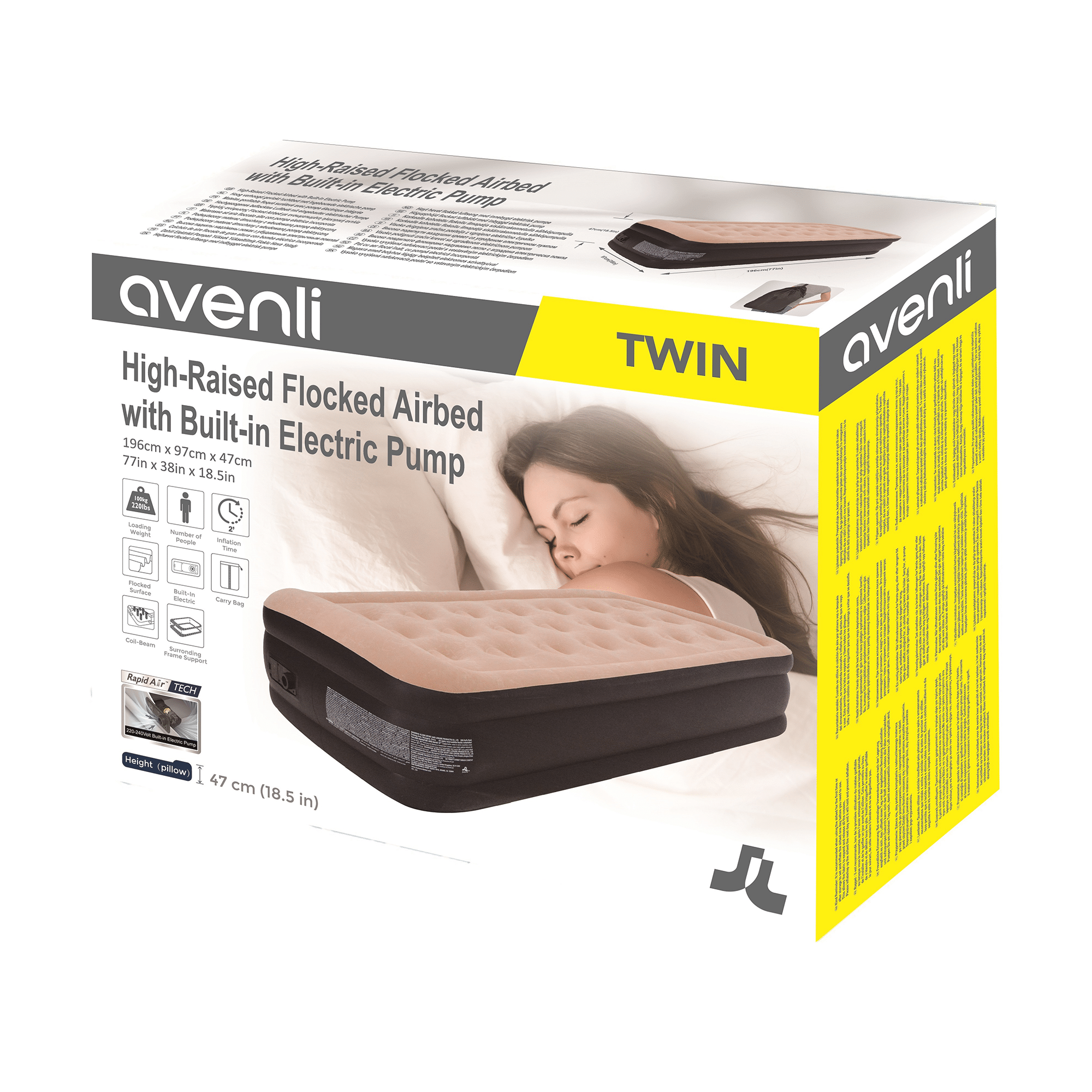 Wysoki pompowany materac AVENLI z wbudowaną pompką 196x97x47