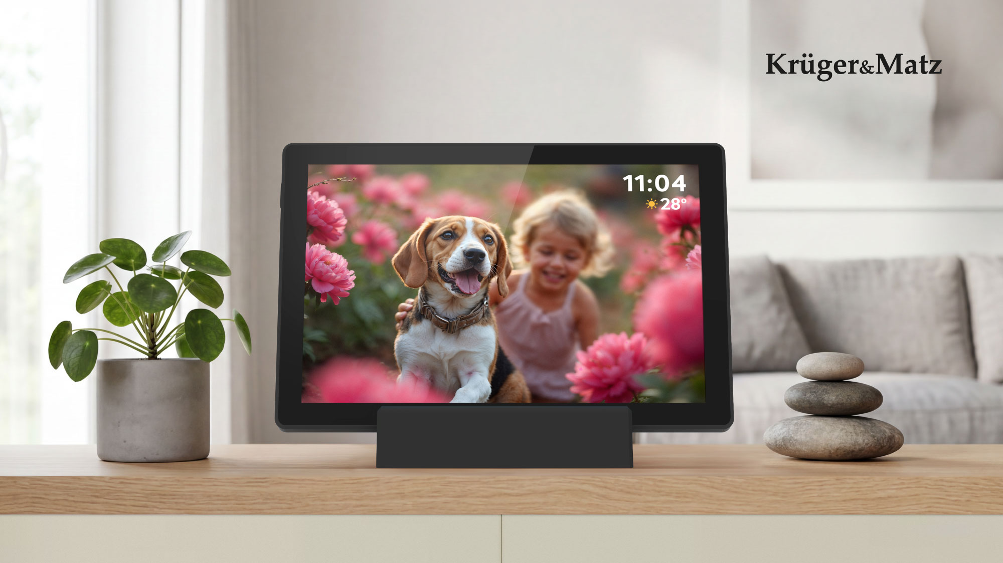 Cyfrowa ramka zdjęć KM1104 to nowoczesny sposób na codzienne przeżywanie wspomnień w domu i biurze. Dzięki eleganckiemu designowi i intuicyjnej obsłudze pozwala w kilka sekund przesyłać zdjęcia i filmy prosto ze smartfona. To idealne rozwiązanie dla rodzin, które chcą być bliżej siebie, niezależnie od odległości oraz dla osób ceniących stylowe, inteligentne technologie w swoim otoczeniu.