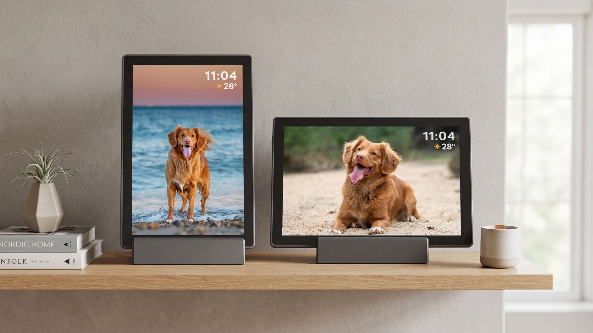 Ramka cyfrowa została zaprojektowana tak, aby działać zarówno w orientacji pionowej, jak i poziomej. Dzięki temu dopasujesz ją idealnie do każdego zdjęcia oraz stylu wnętrza. Niezależnie od ustawienia, obrazy prezentują się estetycznie i naturalnie, tworząc spójną i elegancką dekorację domu lub biura.
