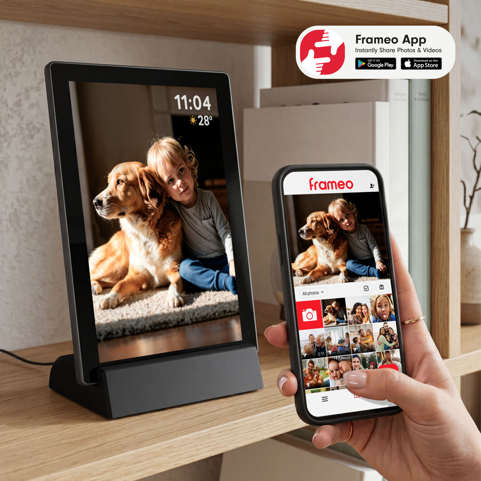 Dzięki aplikacji Frameo możesz w prosty sposób przesyłać zdjęcia i filmy bezpośrednio ze smartfona na ramkę. Wystarczy kilka kliknięć, aby dzielić się chwilami z bliskimi w czasie rzeczywistym. To idealne rozwiązanie dla rodzin, przyjaciół i osób mieszkających w różnych miejscach świata, które chcą być zawsze blisko siebie.
